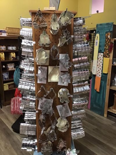 KITCHEN GADGETS GOURMET FOODS NEWTIQUES UNIQUES PLACE MATS APRONS MINI GRILLS SUGARS, SPRINKLES, AND JEL FOOD COLORING COOKIE CUTTERS MEASURING INSTRUMENTS WINE KEEPERS BOTTLE OPENERS OLIVES HOT JELLIES SCONE MIXES AND MORE!
